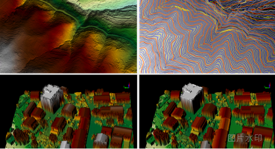 生成數(shù)字高程模型(DEM)、等高線、斷面圖等產(chǎn)品(上圖)